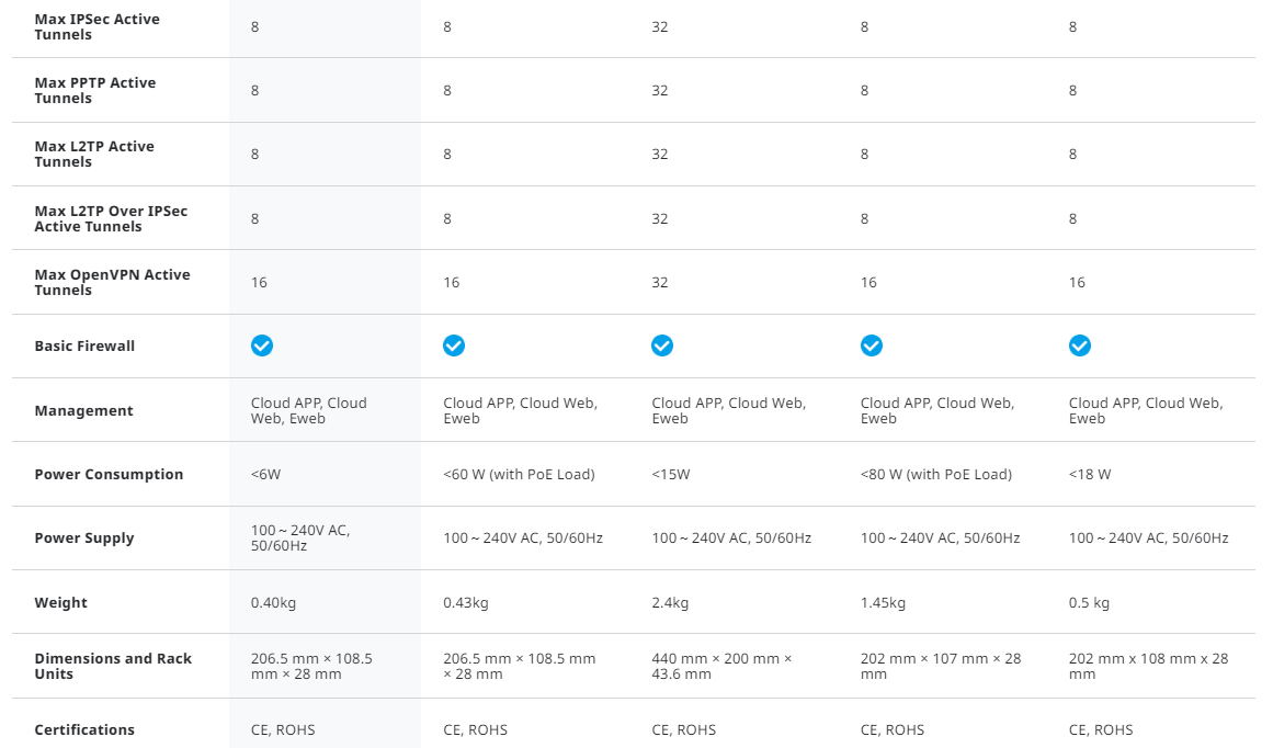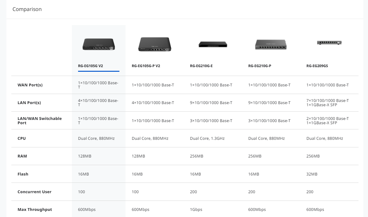 Ruijie Router Sin POE RG-EG105G-V2 Nube ,5 GE, 2 WANs,100 usuarios ,600Mbps.