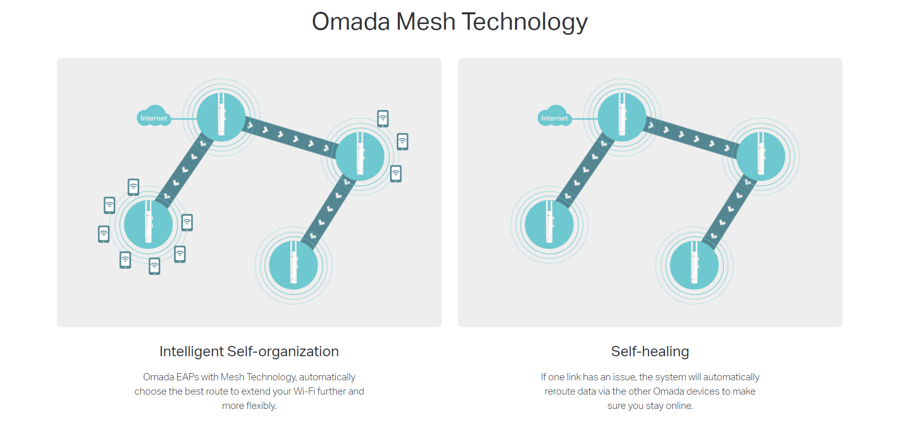 Gestión centralizada: Acceso a la nube y aplicación Omada para una gestión sencilla y práctica. Tecnología Omada Mesh: Permite la conectividad inalámbrica entre puntos de acceso para un mayor alcance, lo que hace que las implementaciones inalámbricas sean más flexibles y convenientes.*